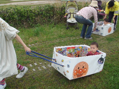 そして次はアンパンマン号に乗り込み、ママに引っ張ってもらうゲーム!!